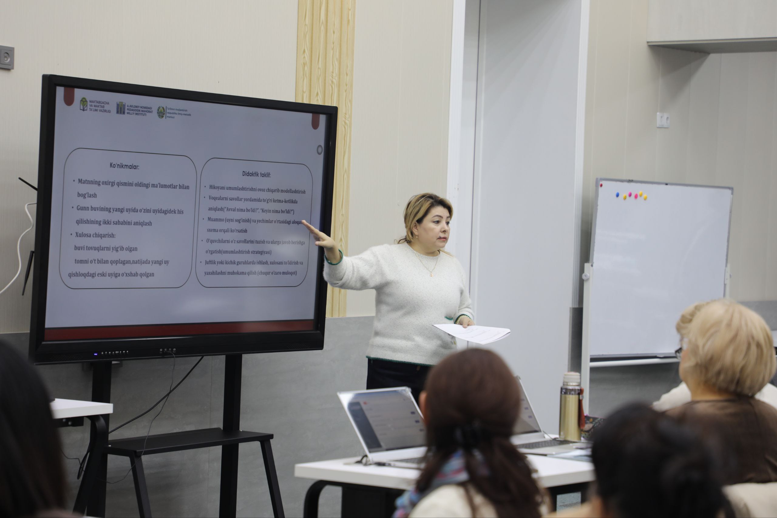 Kuni kecha institutda o‘tkazilgan treninglarda “O‘qib tushunishni o‘rgatishning beshta asosiy tamoyili” asosida “Tomdagi gullar” matni amaliy tahlil qilindi.