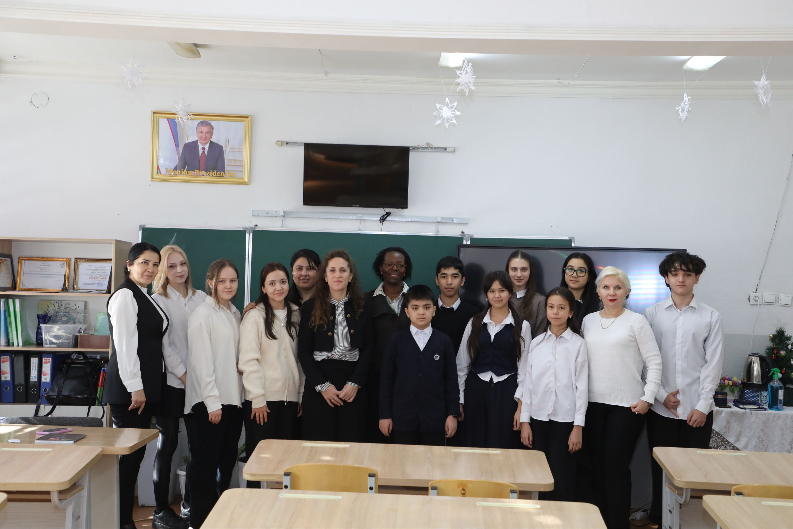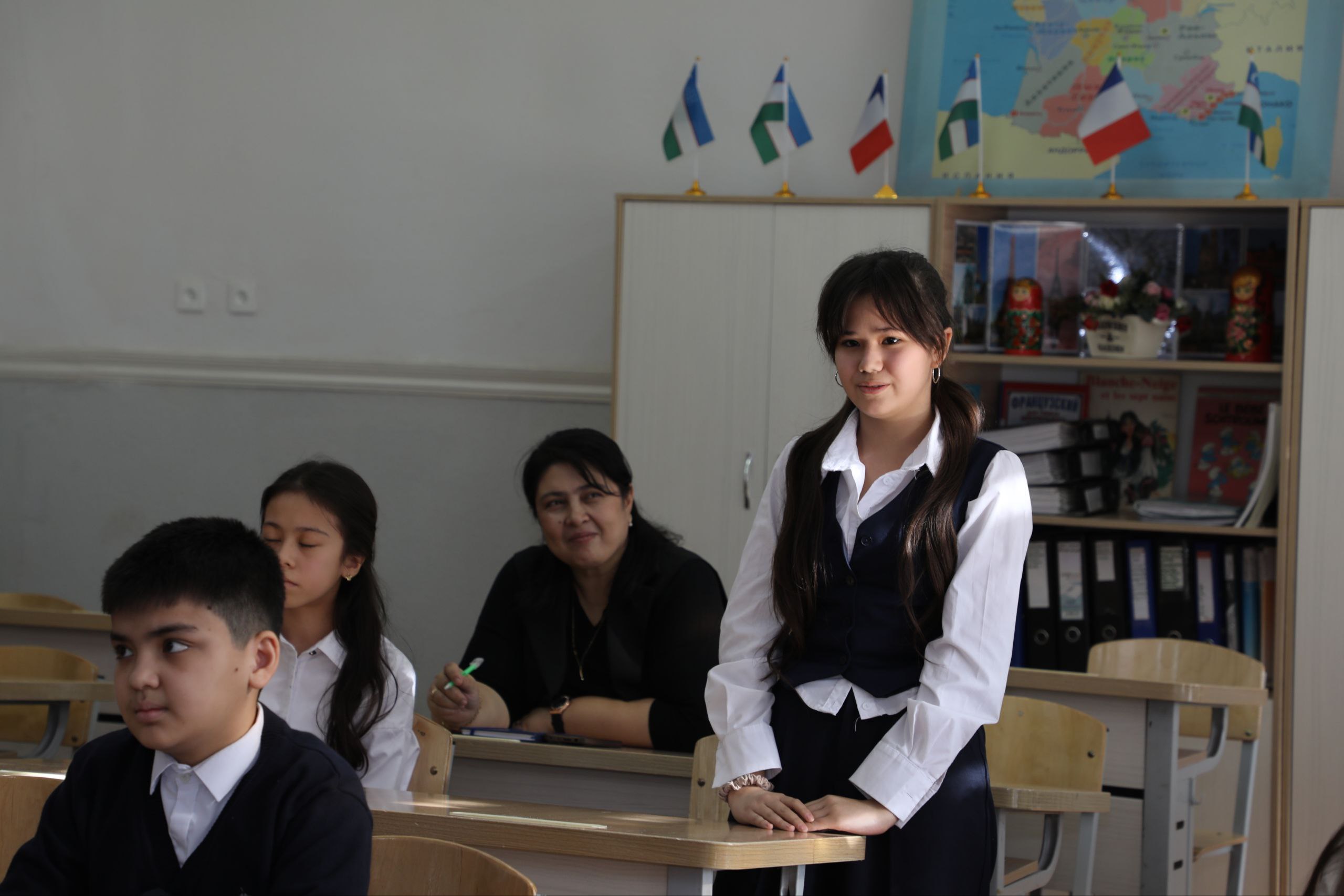 Nathalys Fiokouna maktablarda fransuz tili o‘qituvchilari va o‘quvchilar bilan uchrashuvlar o‘tkazib, dars o‘tkazilishi jarayonlarini kuzatdi.