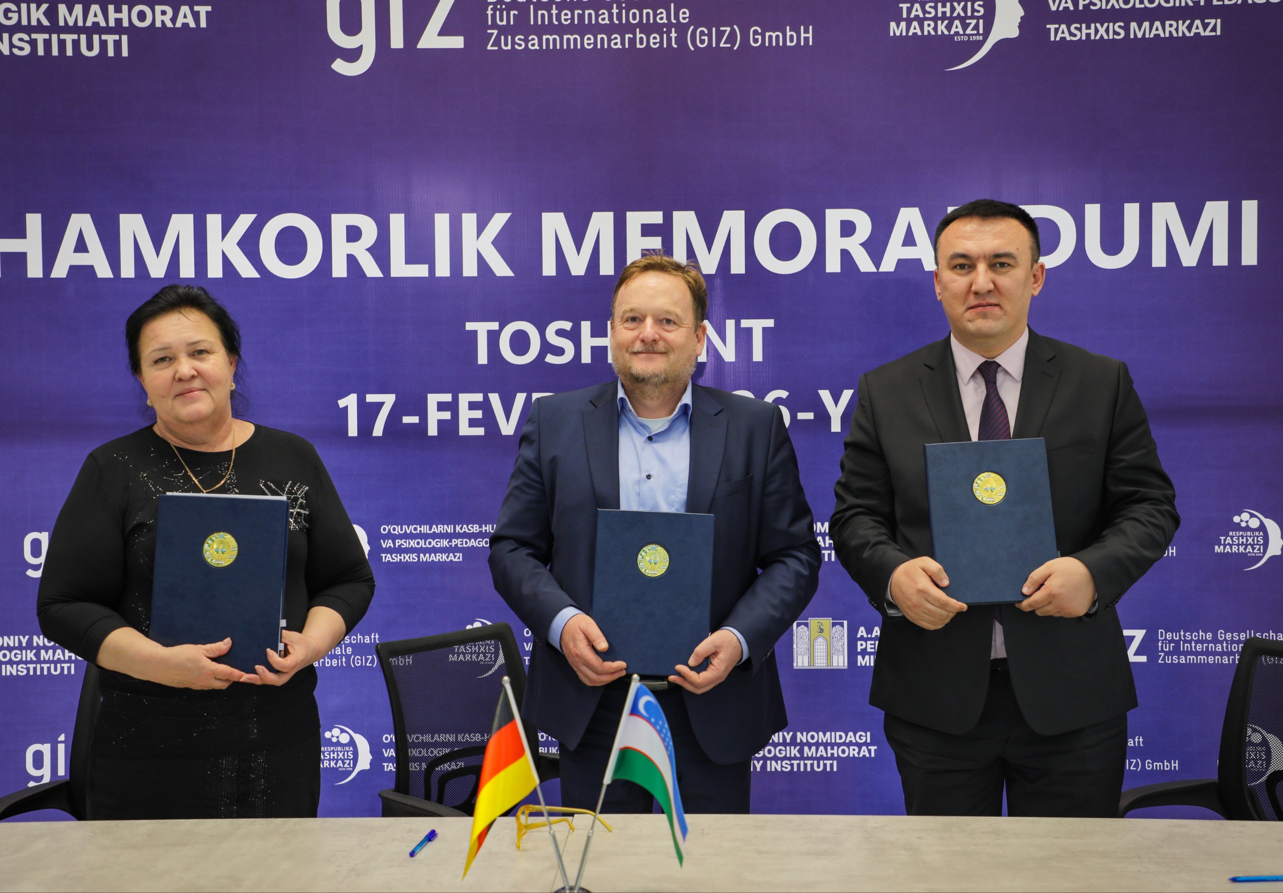 ✅ A.Avloniy nomidagi pedagogik mahorat milliy instituti, Germaniya xalqaro hamkorlik jamiyati (GIZ) hamda O‘quvchilarni kasb-hunarga yo‘naltirish va psixologik-pedagogik respublika tashxis markazi o‘rtasida “O‘zbekiston kasb-hunar ta’limi tizimini isloh qilish va modernizatsiya qilish jarayonini qo‘llab-quvvatlash” (TexVET II) loyihasi doirasida o‘zaro anglashuv memorandumi imzolandi.