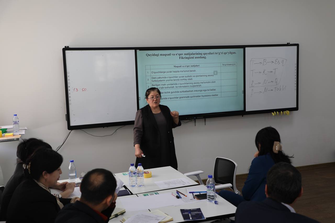 Mashg‘ulotlarda dars tahlili, baholash indikatorlari, zamonaviy pedagogik yondashuvlar hamda tanlov jarayonining tashkiliy jihatlari yuzasidan amaliy tushuntirishlar berilmoqda.