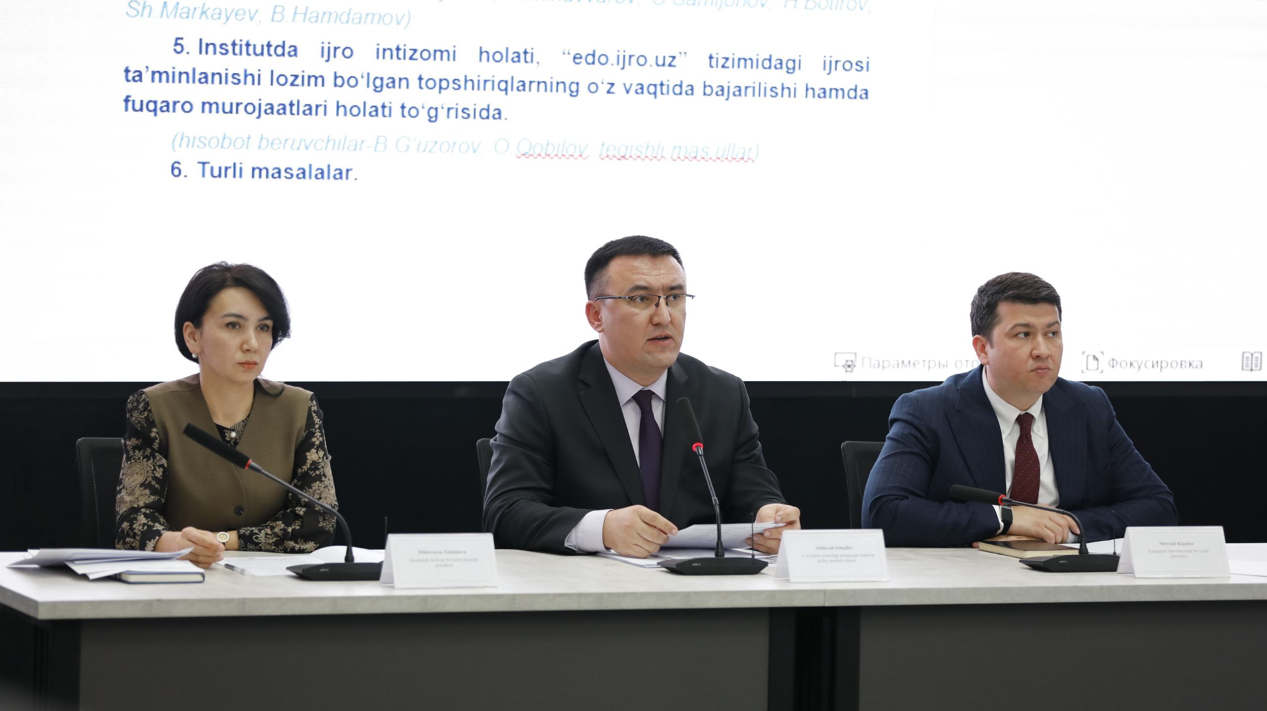Unda institut faoliyati oldida turgan vazifalar, amalga oshirilayotgan ishlar natijalari hamda kelgusida bajarilishi lozim bo‘lgan vazifalar ko‘rib chiqildi.