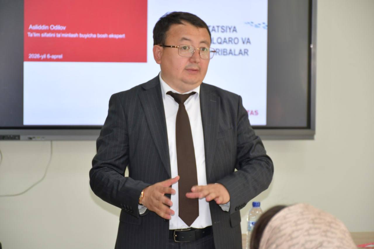 Shu bilan birga, ishtirokchilarga akkreditatsiya platformasi orqali ichki baholashni amalga oshirish hamda ichki sifatni ta’minlash tizimini samarali yo‘lga qo‘yish bo‘yicha amaliy ko‘nikmalarni rivojlantirishga qaratilgan mashg‘ulotlar ham o‘tkazildi.