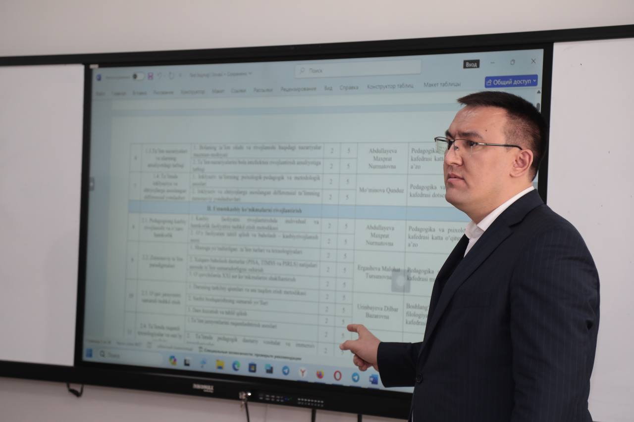 100 soatlik malaka oshirish kurslarining yakuniy nazorat sinovlari uchun test topshiriqlarini ishlab chiqish bo‘yicha seminar o‘tkazildi.