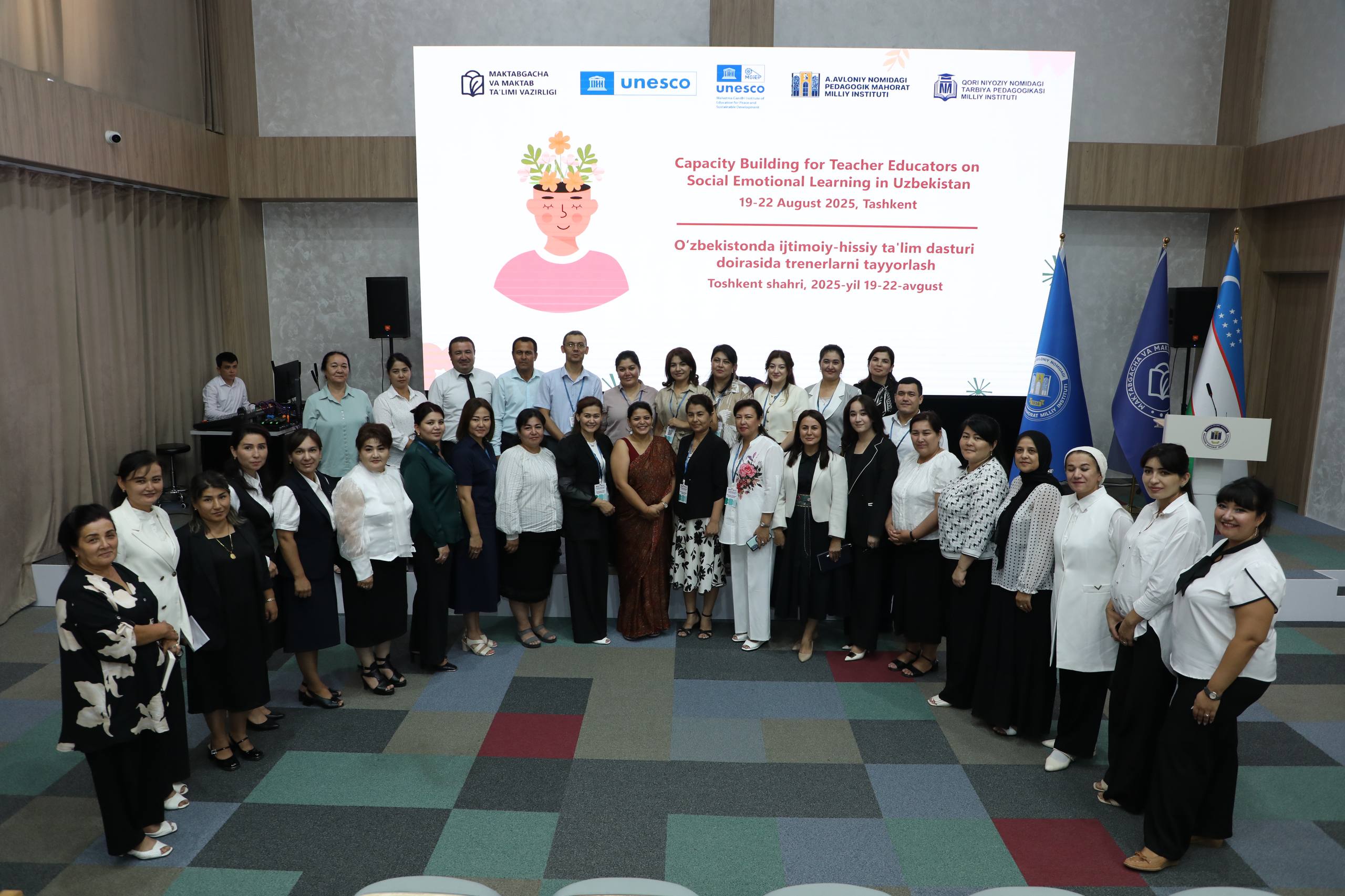 A.Avloniy nomidagi pedagogik mahorat milliy institutida Maktabgacha va maktab taʼlimi vazirligi tomonidan YUNESKO tashkiloti, M.Gandi nomidagi Tinchlik va barqaror taraqqiyot uchun Ta’lim instituti va Qori Niyoziy nomidagi Tarbiya pedagogikasi milliy instituti hamkorligida o‘qituvchilar uchun Ijtimoiy-hissiy taʼlim (SEL) dasturi bo‘yicha o‘quv treninglarga start berildi.