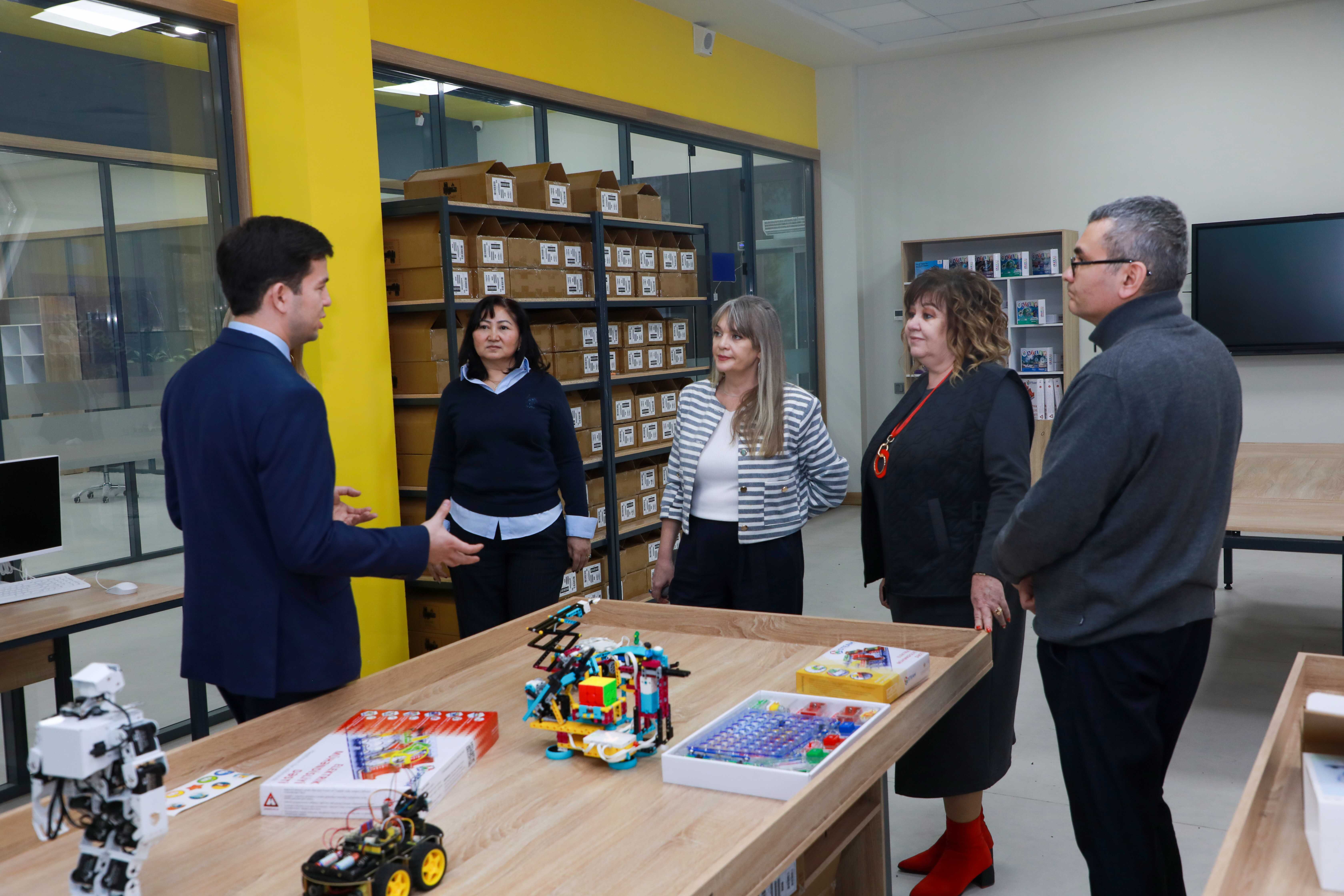 Mehmonlar institutning yangi binosi, Axborot-resurs markazi, Abdulla Avloniy yodgorlik muzeyi va o‘quv xonalaridagi sharoitlar bilan tanishdilar. STEAM laboratoriya markazi mehmonlarda katta qiziqish uyg‘otdi.